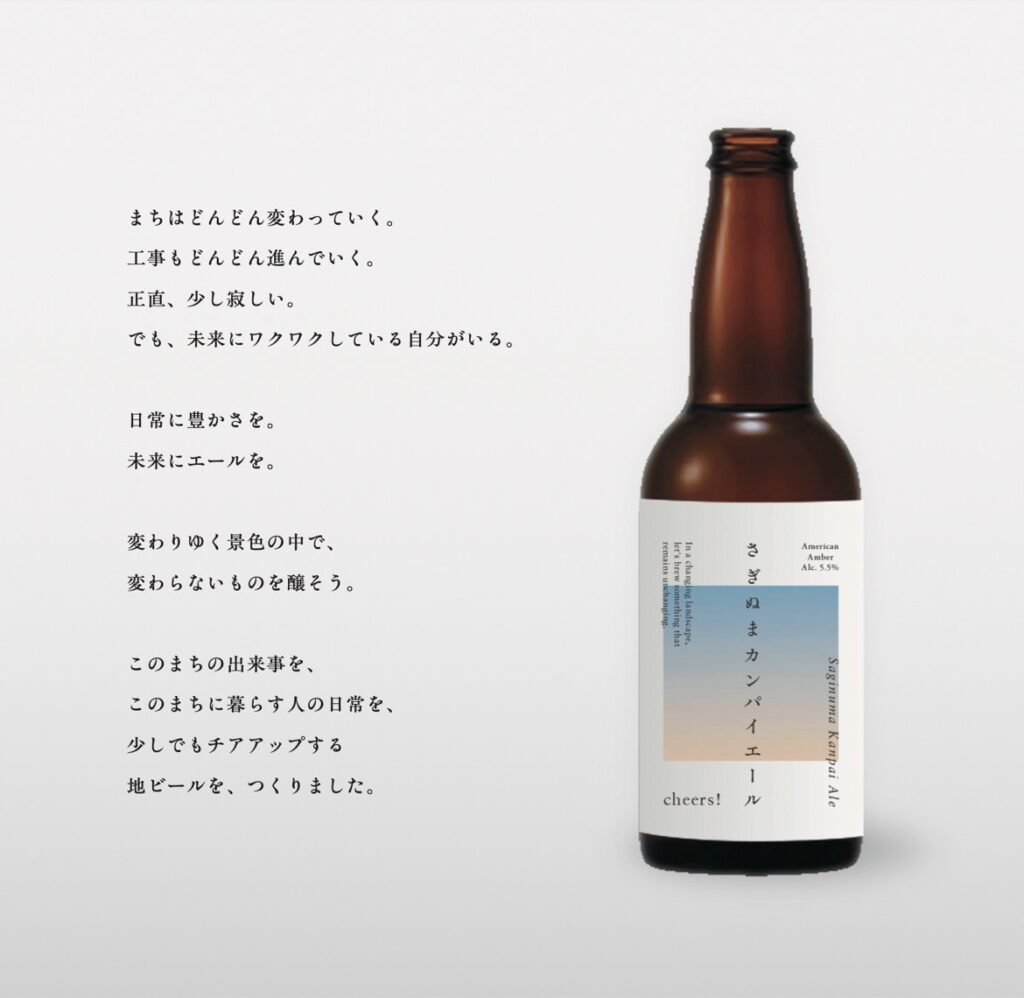 本日リリースのビールは遠野で摘んできた生ホップ(Cascade)を使ったPale Aleとなります。しかも、このビールはコラボビールで鷺沼の都市開発企画の一環で醸造したものとなっております。