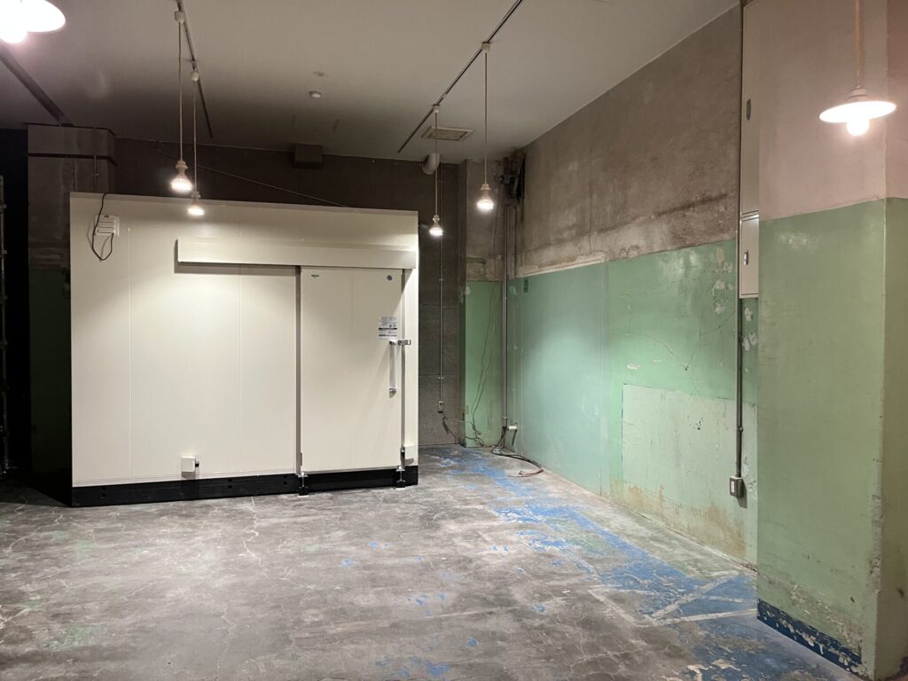 ホシザキの立派な冷蔵庫が鎮座してました。少しずつ準備が進んでいます。