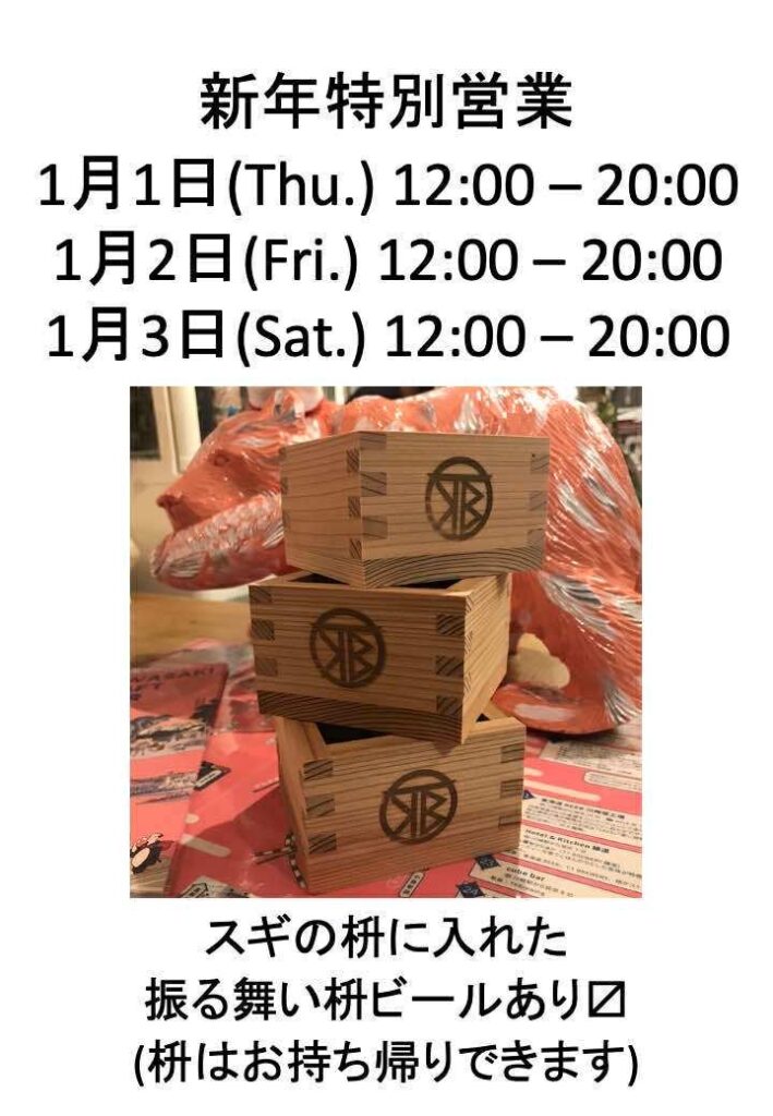 新春営業告知: 元旦は初詣いってTKBに寄ろう!